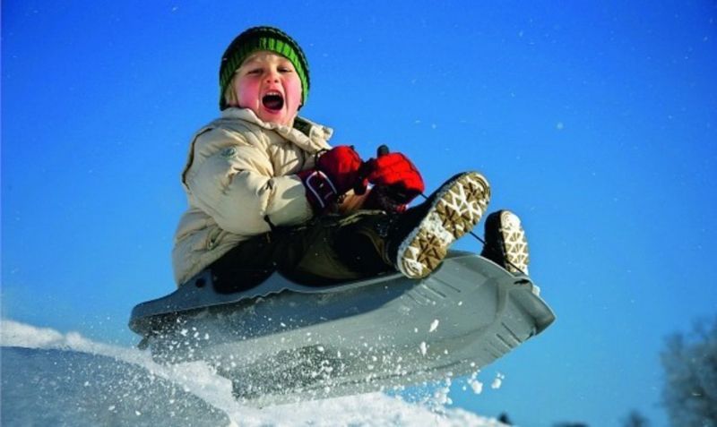 Катание на санках и ледянках со снежных горок является непременным атрибутом зимних развлечений.