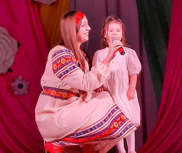 Русскую народную песню спела Ирина Поройкова. Её звонкий голос, а также артистизм пришёлся всем по душе. Пока мама Ирина выступала, её маленькая дочка Есения тоже готовилась предстать перед публикой: она прочитала милый стишок, конечно же, про маму, которая всегда поможет своему ребёнку, в том числе и перешагнуть через яму. А вот Анна Матушкина удивила видеопрезентацией, в которой рассказала о своём большом подворье, где живут поросята, курицы и цыплята. Тяжёлый каждодневный труд ей помогают выполнять супруг и трое сыновей. «Вам судить, является ли такая работа увлечением», - произнесла Анна в завершение, обращаясь к зрителям.