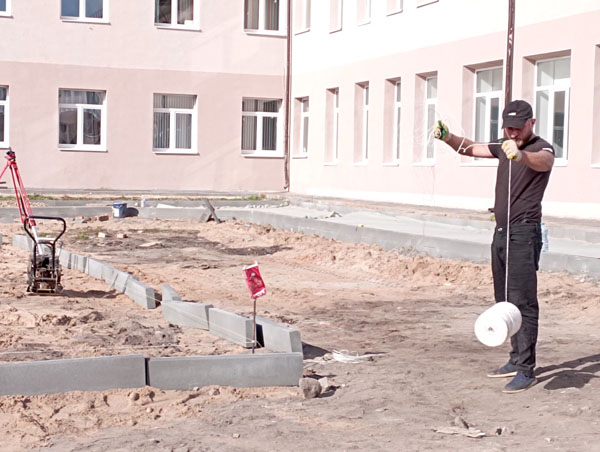 Как рассказала «ПН» директор учреждения О.С. Епифанова, там идут работы по благоустройству, строятся две площадки. Одна из них, 25 на 13 кв.м, с плиточным покрытием, станет местом для проведения общешкольных линеек. Здесь можно будет собрать на торжественное мероприятие все классы сразу, что раньше не удавалось из-за отсутствия подходящего пространства. Вторую, которую заасфальтируют, в дальнейшем планируется использовать как спортивную. Также двор украсят газоны, а по всему его периметру будут проложены асфальтовые дорожки. И уже сейчас пришкольную территорию украшает баннер с изображением Российского триколора.