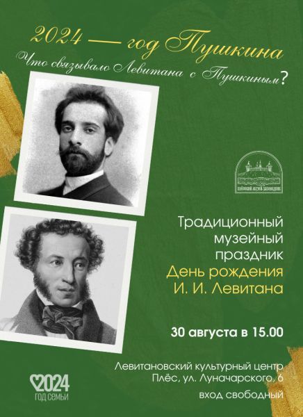 30 августа в 15.00 в Плёсе пройдёт традиционный музейный праздник «День рождения И. И. Левитана».