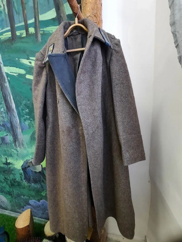 Шинель тяжёлая, длинная, пошита из шерстяного сукна. Цвет - обычный - серый, лишь на воротнике синие петлицы с пуговицей и отворот воротника синего цвета. Задумываются ли посетители музея, откуда вообще взялся этот вид одежды?