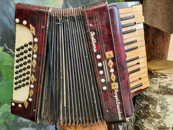 Рядышком с шинелью Нины Павловны расположился старенький аккордеон марки Bellona Royal Standard. Его она привезла с войны. Как следует из многочисленных историй, выложенных в Интернете, такая практика была очень распространённой: многие советские бойцы подбирали брошенные немцами аккордеоны, когда фашисты бежали с оккупированных территорий под натиском советских войск. А далее начиналась вторая жизнь этих музыкальных инструментов: часть из них использовалась по назначению - на них играли, часть, как и тот, который привезла Н.П. Староверова, попала в музей. Такая любовь народа к аккордеону была объяснима: они сопровождали выступления целого ряда известных певцов - А. Ивановой, К. Шульженко, Л. Руслановой и др. Иметь аккордеон для многих советских людей того времени считалось престижным.