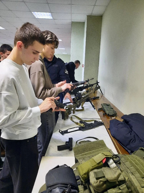 А далее школьники получили возможность ознакомиться с некоторыми видами оружия, экипировки сотрудников силовых структур, увидеть часть оборудования, связанного с управлением беспилотниками. Можно было задать любой вопрос и получить компетентный ответ. Наибольший интерес вызвали автоматы и пистолеты, бронежилет и каску изъявили желание примерить как мальчики, так и девочки, и особенно много было желающих надеть специальные очки, которые используются при работе с дронами.