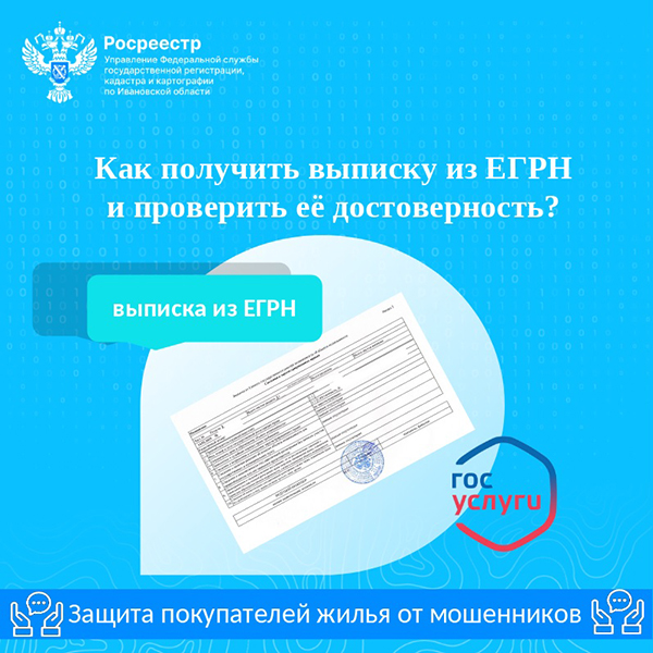 Заместитель руководителя Управления Росреестра по Ивановской области Ольга Смирнова рассказала как получить выписку из ЕГРН и проверить её достоверность?