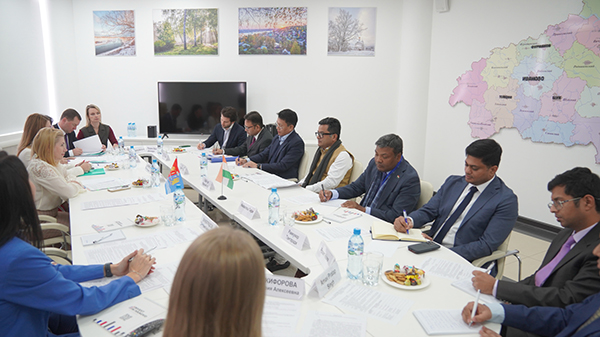 От имени Ивановской области Государственного министра и представителей Посольства Республики Индия в РФ поприветствовала заместитель председателя правительства региона Юлия Васильева. Она отметила, что наши страны связывают давние теплые взаимоотношения. Зампред представила экономический и образовательный потенциал региона и те сферы, которые являются наиболее перспективными для взаимовыгодного сотрудничества. Она особо подчеркнула, что легкая промышленность формирует более 40% регионального ВРП. Вместе с тем, в Ивановской области активно развиваются машиностроение, химическая отрасль, ИТ-сфера, создана инфраструктура поддержки бизнеса.