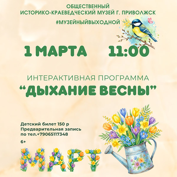 Дорогие друзья! Мы рады пригласить вас отпраздновать наступление первого дня весны вместе с нами в Общественном историко-краеведческом музее!