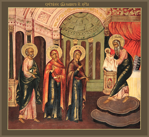 Праздник Сретения Господа Иисуса Христа (что по-церковнославянски как раз означает встречу) совершается через 40 дней после Его Рождества, 15 февраля, то есть 2 февраля по Юлианскому календарю. Он относится к числу тех немногих событий ранних лет жизни Спасителя, о которых в евангельском тексте содержатся детальные сведения.