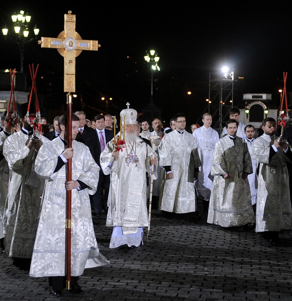 В богослужении Великой Субботы накануне Пасхи уже раскрывается тайна Воскресения Христа. Пасхальная служба начинается около одиннадцати ночи, с полунощницы и крестного хода. Затем, подойдя к дверям храма, торжественным возгласом начинает священник или архиерей утреню Святой Пасхи, за которой следует Божественная Литургия.